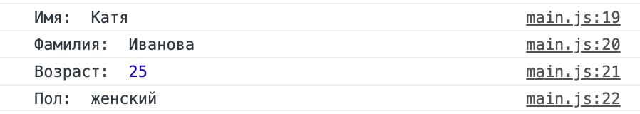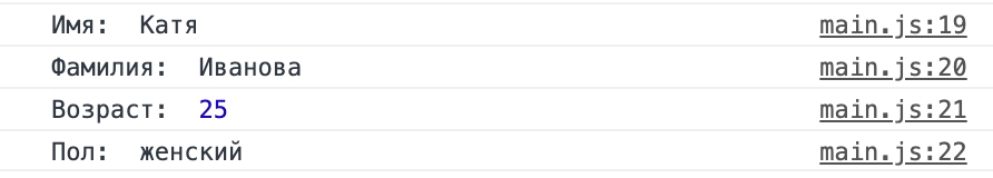 console.log('Пол: ', sex);