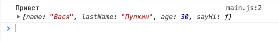 А сейчас, мы создали свой объект, и запустили функцию hi